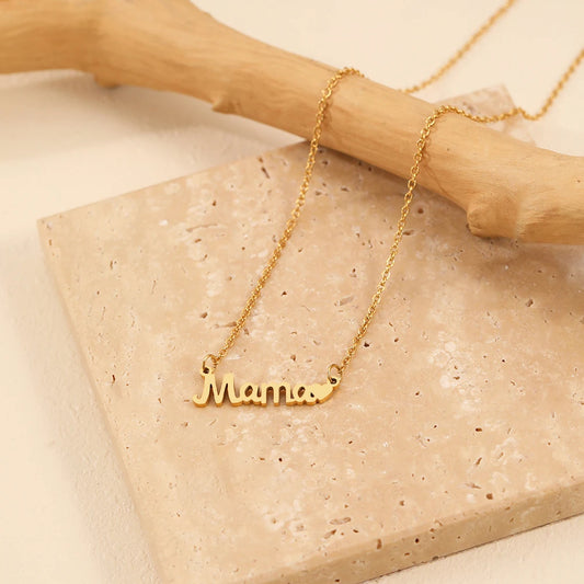 "Stainless Steel Halsband – 'Mama Love' Hjärtformad Bokstavscharms Halskedja, Mors Dags Smycke"