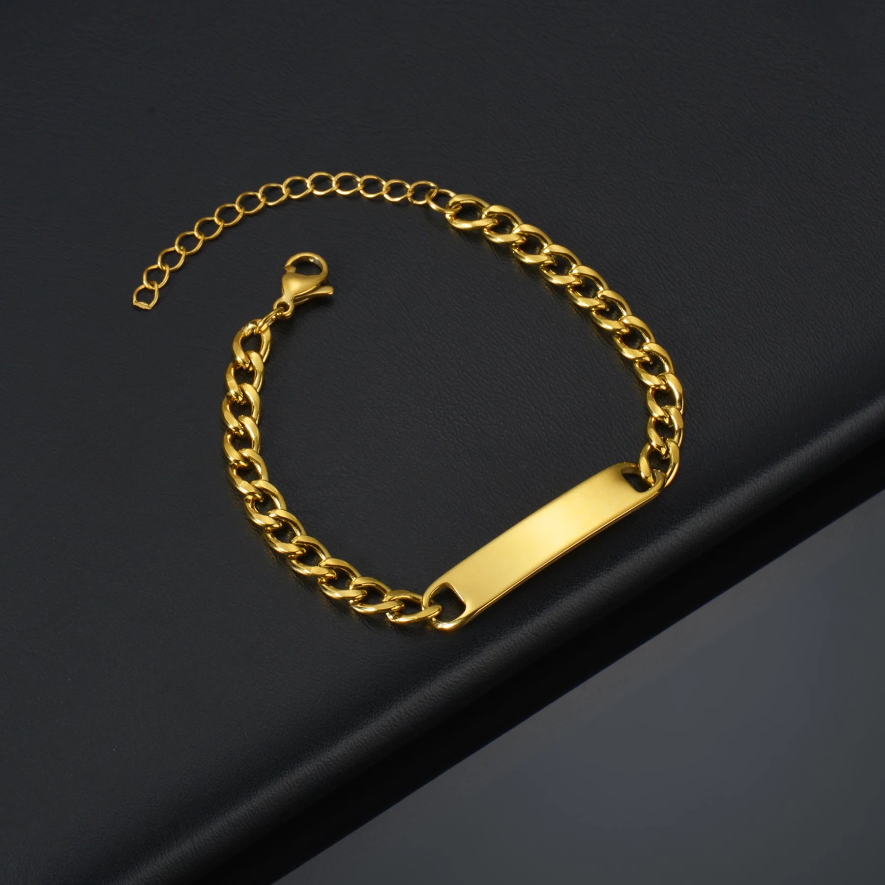 Guld Färgad Armband Stål, Tjock Hand Chain och Blank Bar, Smycke för Män och Kvinnor